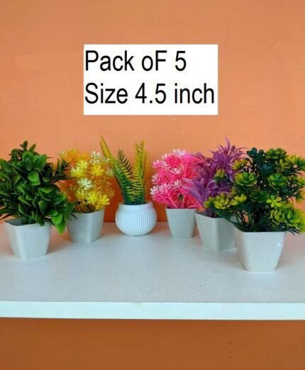 Pack of 5 Mini Plant Artificial Decoration Piece with pot Best for home & Office Decoration purpose